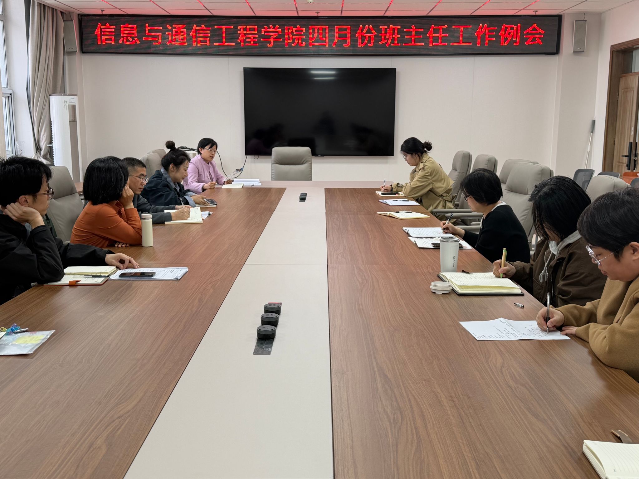 春深日暖,奋进当时。为进一步凝聚育人合力,推动学生工作提质增效,3月31日,信息与通信工程学院(人工智能学院)在科学楼B713会议室组织召开2026年4月班主任工作会议。学院党委副书记兼副院长么兰、全体辅导员及班主任参加会议。