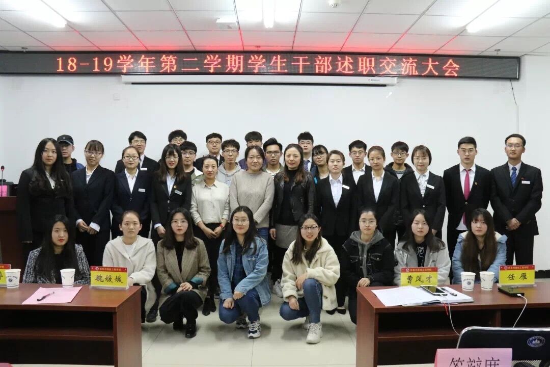 为了加强我院学生干部队伍建设,更好地服务学院学生工作,3月5日下午四点由我院分团委组织部承办的18-19学年第二学期学生干部述职交流大会于科学楼B座715如期举行。院党委书记曹凤才、党委副书记兼副院长魏媛媛、学生科科长任雁、团委副书记闫婷及我院全体学生干部参加本次会议。