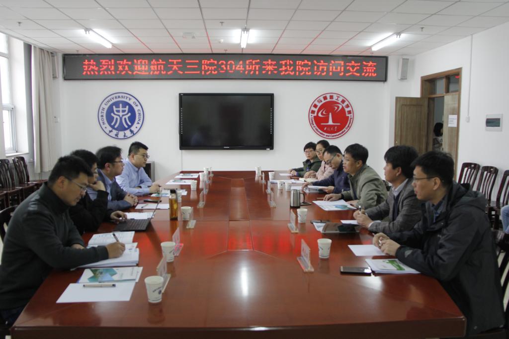 会上,杨风暴院长首先代表中北大学信息与通信工程学院对航天三院304所的来访表示热烈欢迎,并对学院师资队伍、学科建设、科学研究、平台教学等方面做了详细的介绍;航天三院304所副所长王学勇对学院的热情接待表示感谢,同时介绍了304所的发展历史、组织机构、科研方向等。