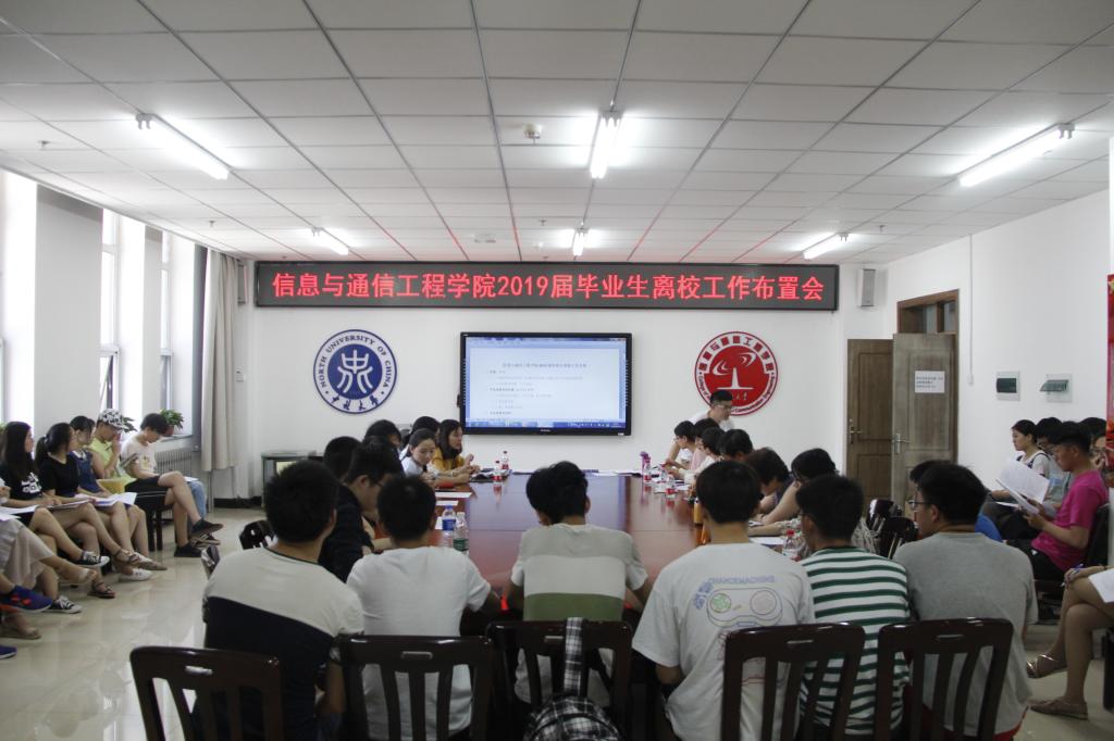 为了加强毕业生离校教育,营造健康和谐、积极进取、文明有序的毕业生离校氛围,6月14日上午10:00信息与通信工程学院召开2019届毕业生离校工作部署会。学院党委副书记魏媛媛、各毕业班班主任和班长、团支书参加了本次会议,会议由学院学生科长任雁老师主持。