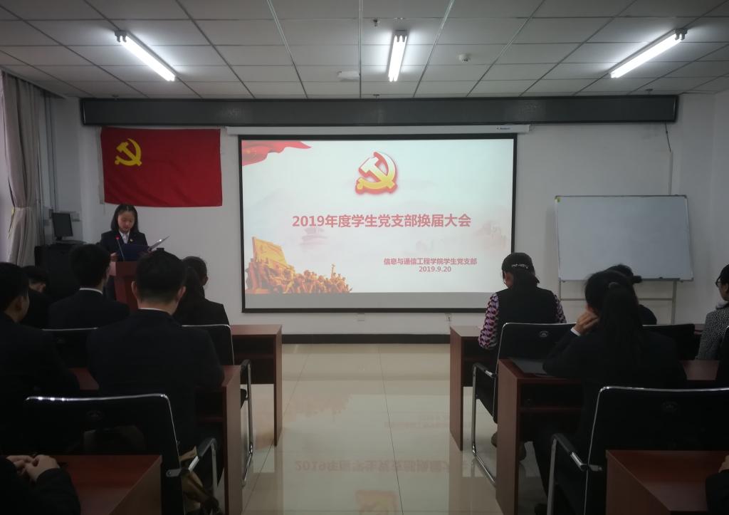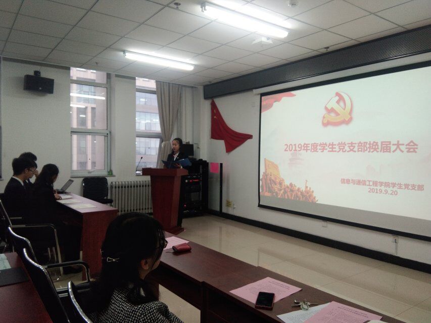 2019年9月20日下午5点,信息与通信工程学院学生党支部换届大会在科学楼715举行。出席本次换届大会的有院党委副书记魏媛媛老师、各学生党支部书记、学生党员。