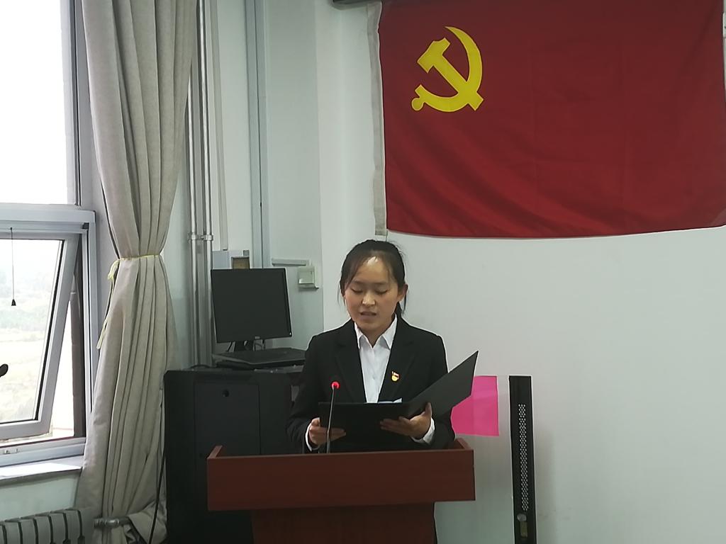 最后,院党委副书记魏媛媛老师发表讲话:她深切期盼,希望我们能继续发扬学生党支部的堡垒作用和旗帜作用,继续加强思想建设、组织建设、作风建设、制度建设,将“不忘初心、牢记使命”的精髓内化于心、外表于行,带动全院学生积极进取,迎难而上,为学校争创双一流高校而奋斗!