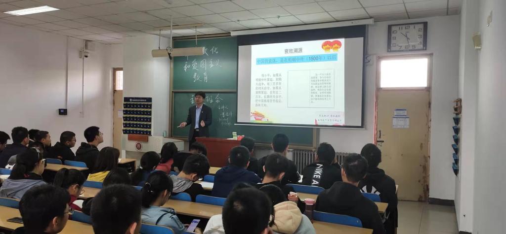 曹书记首先以“三季虫”为引,教育同学们要想全面了解社会发展的过去、现在与未来,一定要跨越时间的束缚。并从时间视角、空间视角和辩证思维三个维度向大家讲述何为“中国梦”。并从中国千年的辉煌讲到康乾盛世的“落日余晖”;从地区经济差距讲到实现共同富裕;从与周边国家领土争端讲到中美贸易摩擦的实质。由古朔今,讲到当今中国发展所面临的机遇和挑战,并通过新中国成立以来取得的伟大成就激励同学们对祖国未来发展信心以和报效祖国的决心。