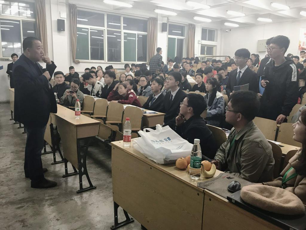 会上,刘宝华老师就目前大学生对自身职业生涯规划不清晰、职业价值判断的标准趋向务实化、职业生涯规划教育缺乏针对性等问题,结合自身经历与所见所闻提出合理的解决方案。以互动的形式引导同学们正确的认识自身的个性特质、现有的与潜在的资源优势;帮助同学们重新定位自身价值;使同学们树立明确的职业发展目标,引导同学们找准与实际相结合的职业定位,发现职业机会。