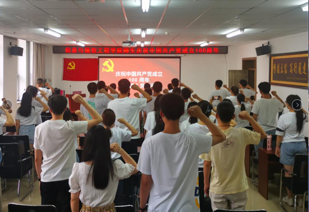 2021年7月1日上午8时,庆祝中国共产党成立100周年大会在北京天安门广场隆重举行。中共中央总书记、国家主席、中央军委主席习近平发表重要讲话。信息与通信工程学院党委书记曹凤才、党委副书记魏媛媛及300余名师生党员共同收看了大会盛况直播、认真聆听了习近平总书记的重要讲话。