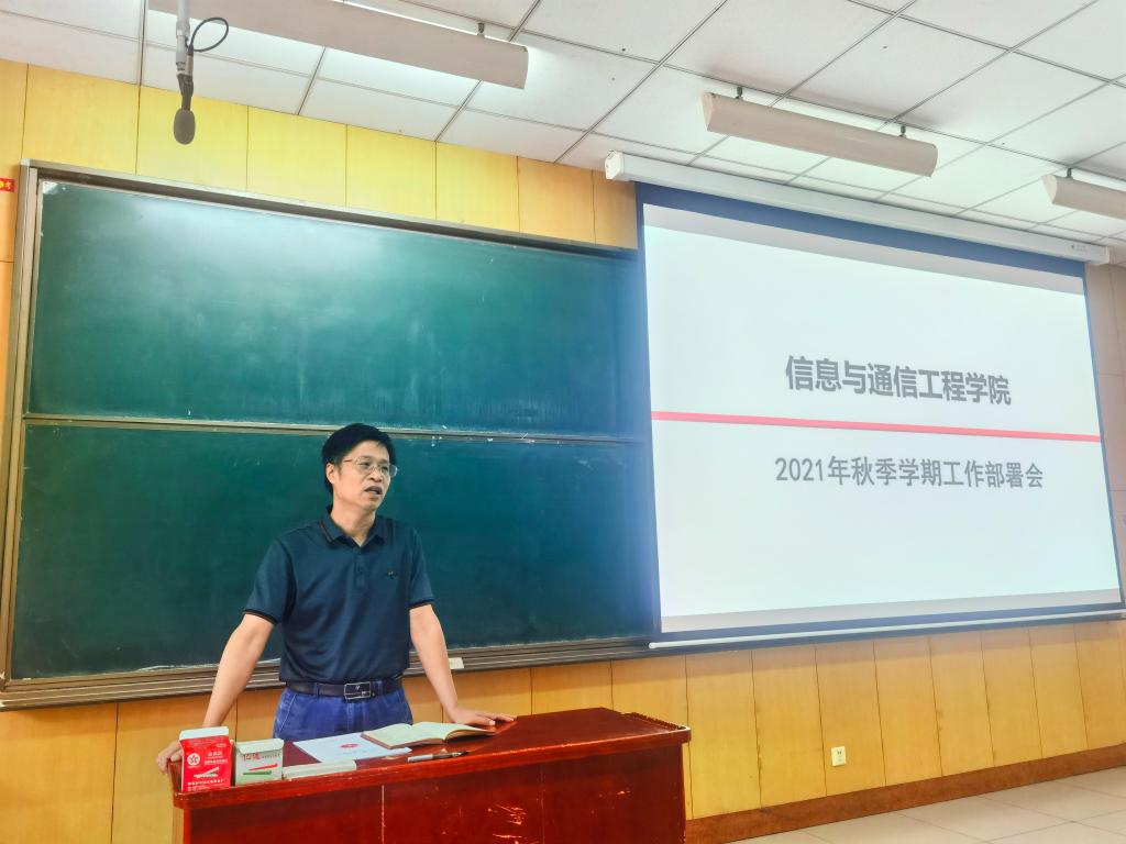 2021年9月6日下午,信息与通信工程学院在11308H教室召开2021年秋季新学期工作部署会。全体院领导、各系主任、副主任、科级干部及全体教师出席,会议由党委副书记魏媛媛主持。
