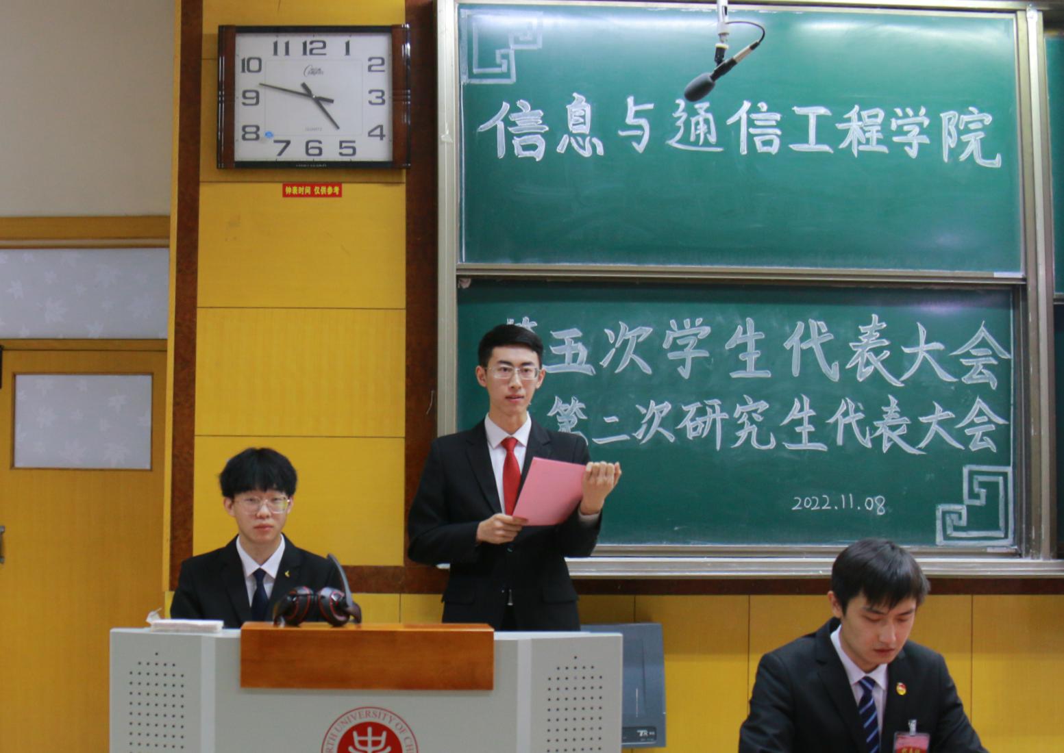 2022年11月8日,信息与通信工程学院在09201H召开了第五次学生代表大会暨第二次研究生代表大会。院党委副书记兼副院长魏媛媛、团委书记闫婷、团委王彪老师、科研科王建萍老师应邀出席大会,学院98名学生代表参加本次大会。