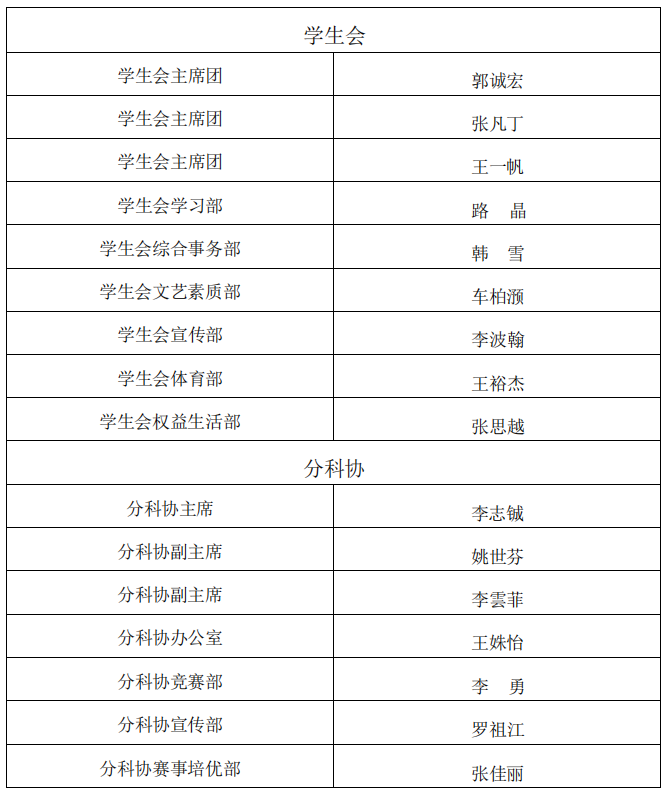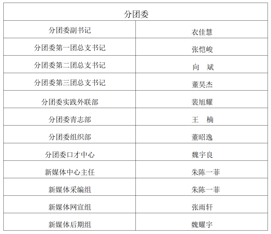 经过团学骨干后备自主报名、学院资格审查、实践考核、竞职答辩等环节后,结合学生会后备期间所负责相关事务完成度及个人能力等情况综合考量,由学院团学工作领导组集体商议,现拟聘任郭诚宏等 27 名同学为信息与通信工程学院 2024 届团委学生会学生骨干,试用期一个月,试用期表现合格者即正式聘用。现予以公示,具体名单如下:
