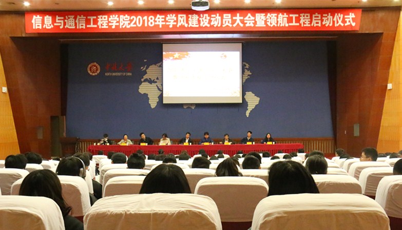 4月10日下午16:00,信息与通信工程学院2018学风建设动员大会暨领航工程启动仪式在图书馆五层学术报告厅隆重召开。出席此次大会的领导有学院院长杨风暴、党委书记曹凤才、科研副院长王明泉、院党委副书记兼副院长魏媛媛、信息与通信工程学科管理部主任陈友兴、光学工程学科管理部主任程耀瑜、生物医学工程学科管理部副主任丁婷,学院全体辅导员和部分班主任代表也参加了会议。