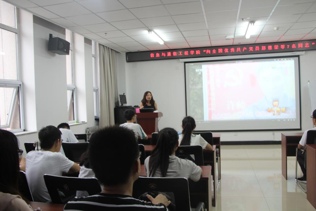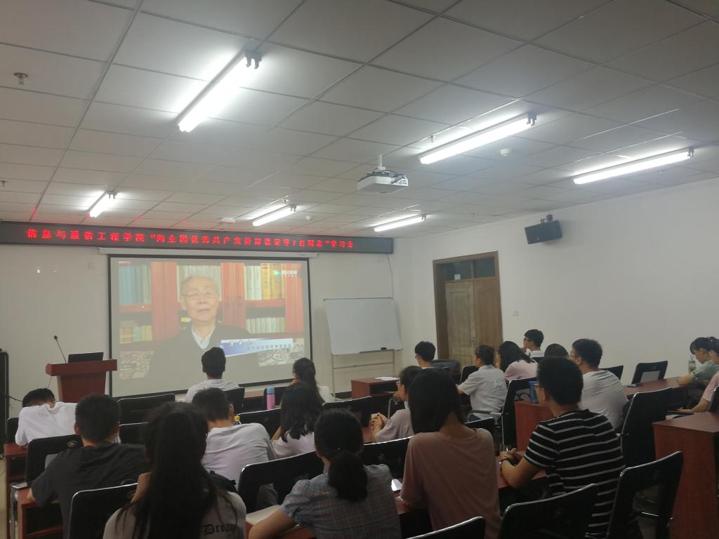 2018年8月1日下午15:00,信息与通信工程学院组织暑期在校学生党员、入党积极分子在院楼715报告厅观看了郑德荣等7名全国优秀共产党员的先进事迹,学习他们身上的优秀品质。