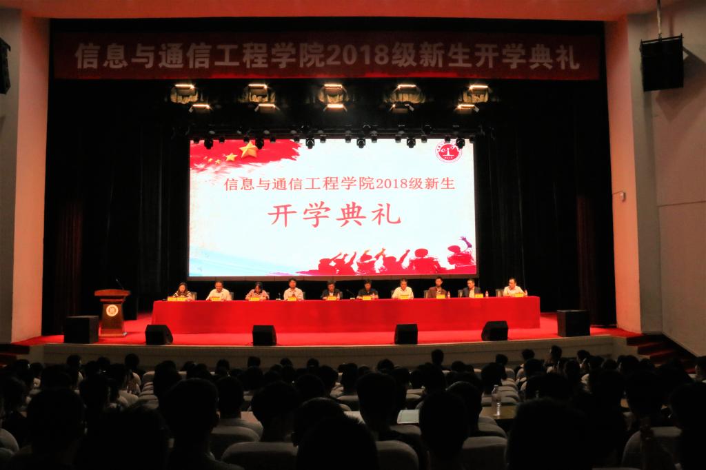 2018年9月11日下午16:30,信息与通信工程学院2018级新生开学典礼在科艺苑隆重举行。副校长潘晋孝、学院党委书记曹凤才、院长杨风暴、电工电子实验教学示范中心主任兼副院长王黎明、院党委副书记兼副院长魏媛媛、信息与通信工程学科管理部主任陈友兴、生物医学工程学科管理部主任张权、光学工程学科管理部副主任张志伟、信息与通信工程学科管理部副主任姚金杰以及各新生班班主任、班主任助理参加了此次会议。会议由学生科科长任雁主持。