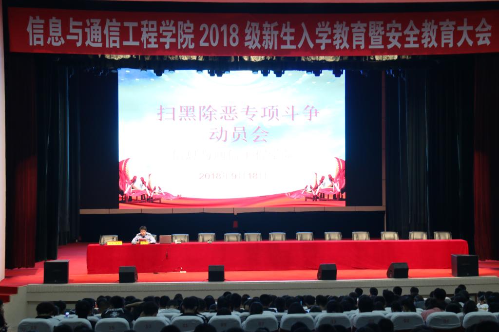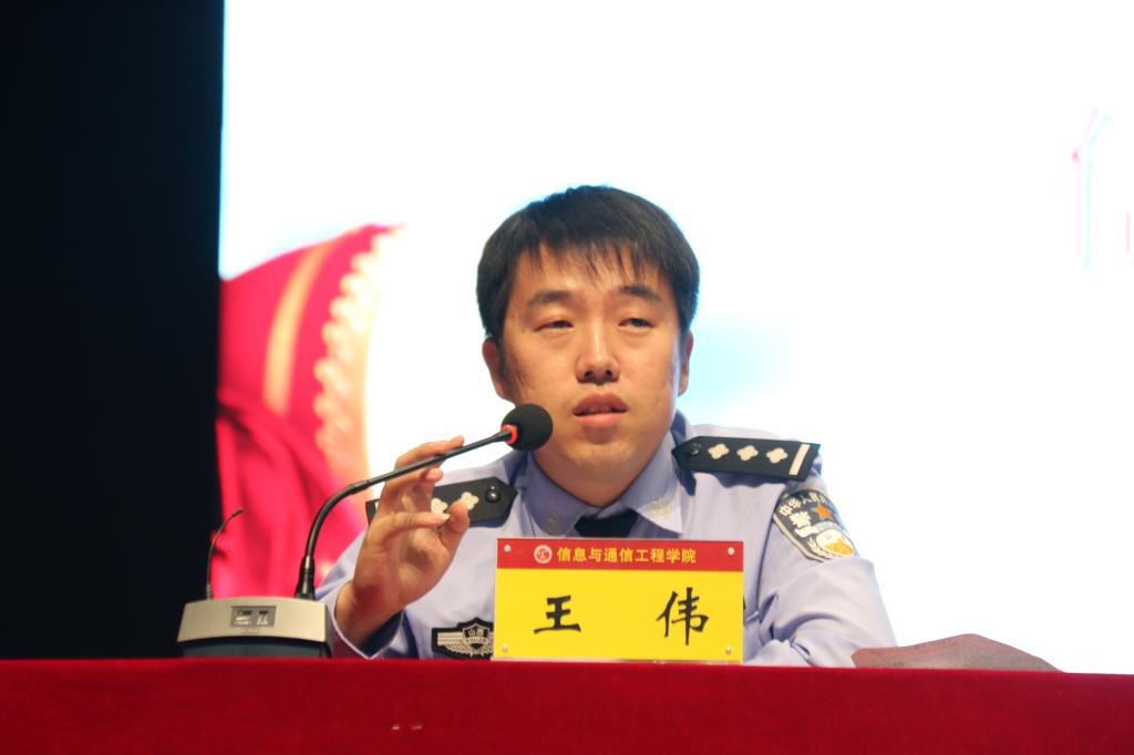 为使新生更好适应大学生活,提高新生安全防范意识,2018年9月18日下午16:30,信息与通信工程学院2018级新生入学教育暨安全教育大会在科艺苑成功举办。大会邀请到保卫处监控中心主任李雁峰老师、尖草坪公安分局上兰派出所王伟民警、国际交流合作处国际交流办公室樊鹏老师为新生进行专题讲座。会议由学生科科长任雁老师主持。
