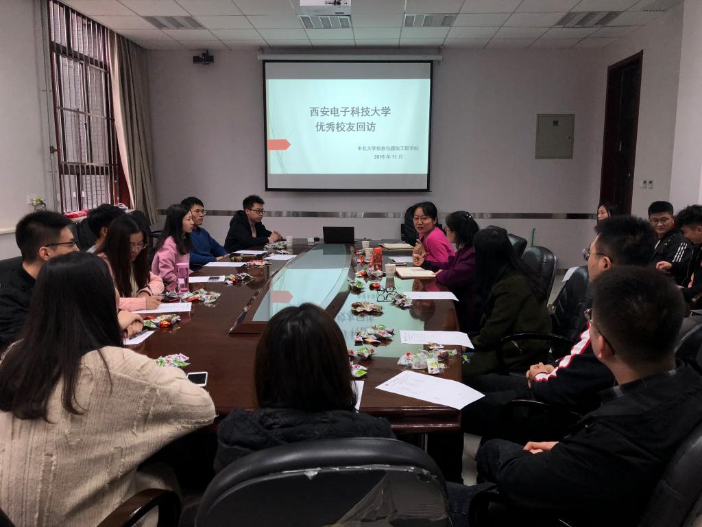 2018年11月15日上午,细雨蒙蒙,但西安电子科技大学主楼218会议室却热情洋溢,信息与通信工程学院党委副书记魏媛媛、学生科科长任雁、学生科辅导员柴锂娟来到西安电子科技大学与34位优秀校友做回访。