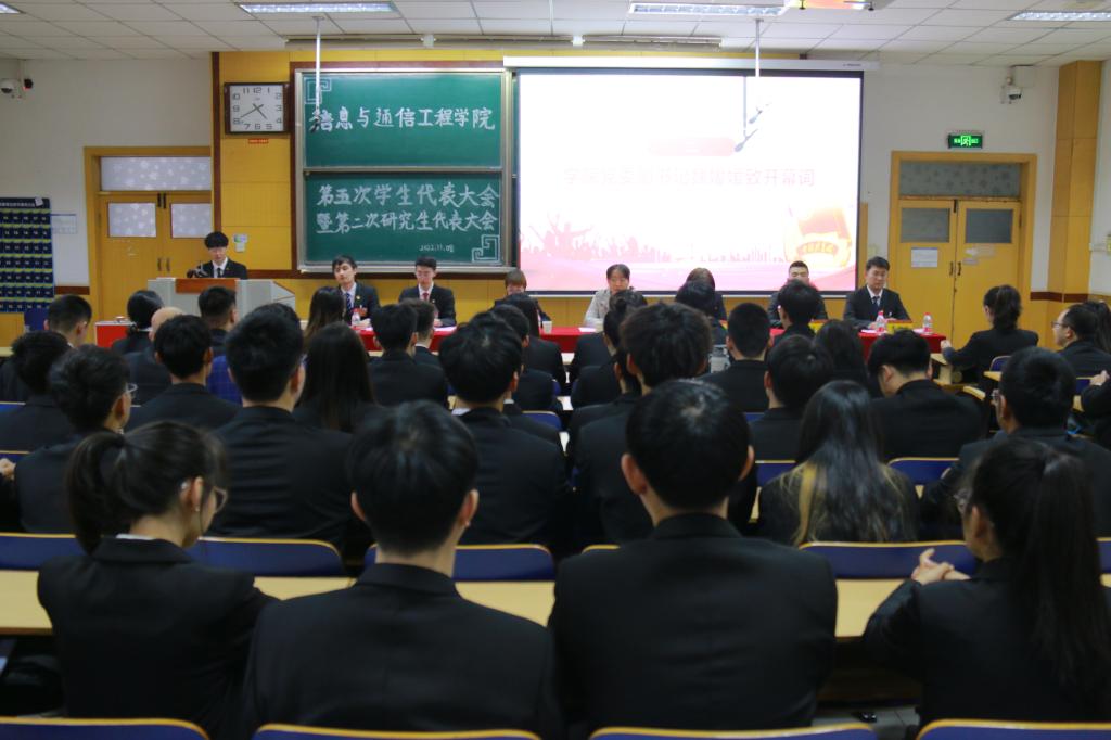 2022年11月8日,信息与通信工程学院在09201H召开了第五次学生代表大会暨第二次研究生代表大会。院党委副书记兼副院长魏媛媛、团委书记闫婷、团委王彪老师、科研科王建萍老师应邀出席大会,学院98名学生代表参加本次大会。