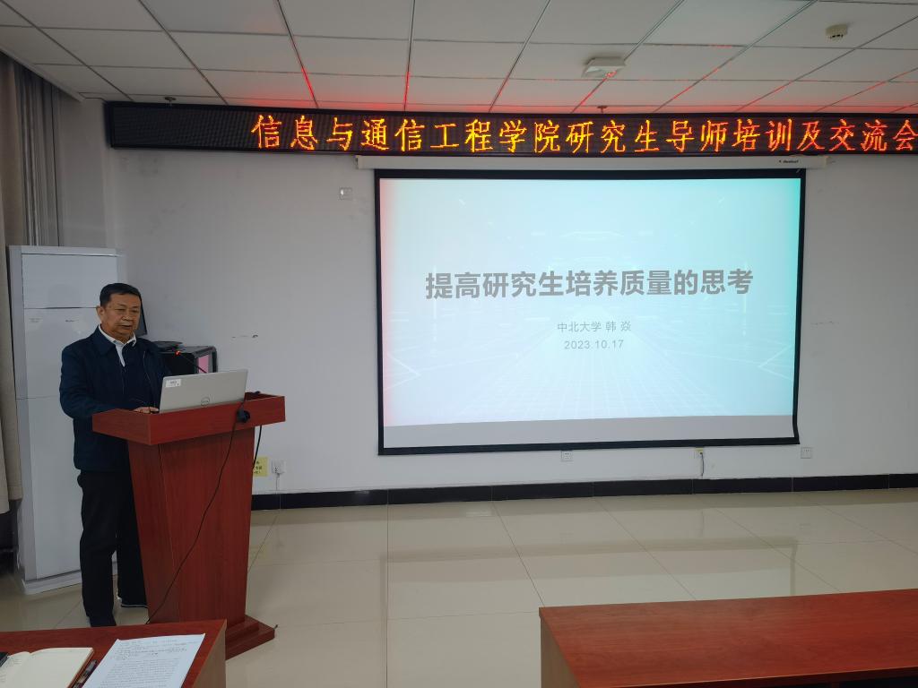 2023年10月17日下午,信息与通信工程学院在科学楼B座715学术报告厅召开了研究生导师培训及交流会,特邀请了信息与通信工程学科首席带头人韩焱教授作为主讲,会议由学院陈平院长主持,全体研究生导师积极参加了此次活动。