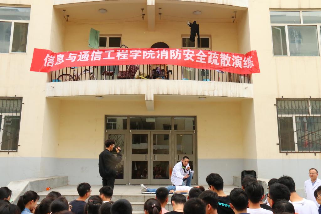 2018年4月26日下午4:30,信息与通信工程学院消防安全疏散演练在文韬四文韬五公寓举行,学院党委副书记兼副院长魏媛媛教授担任总指挥、学生科科长任雁老师担任副总指挥;由学生科赵健东老师带领的中北大学消防安全保护人员组成灭火组、石芳娟老师带领宿管会部分成员组成疏散引导组、邢杰老师及校医院部分医务人员组成安全防护救护组、柴锂娟老师及宿管会部分成员组成后勤保障组,并由大一五个班级参加演练。一切准备就绪后,演练正式开始。