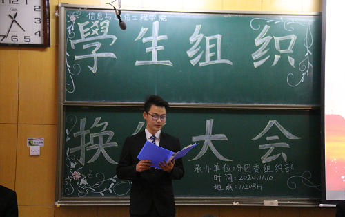 11月10日下午,信息与通信工程学院在11208H举办了2020年度学生组织换任大会。院党委副书记兼副院长魏媛媛,学生科王秋惠老师、王彪老师、胡傅强老师、孟伟老师以及2019、2020级学生干部参加本次大会。会议由院团委书记闫婷主持。