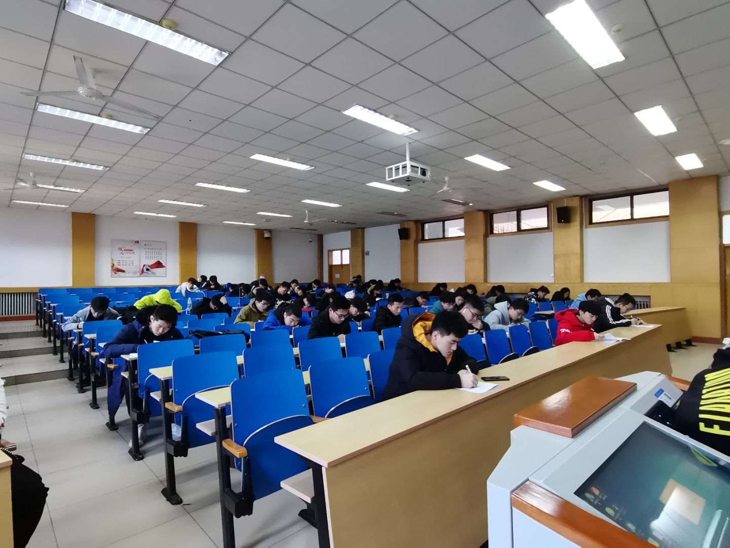 本次考试覆盖学生450余人,严格按照四六级英语考试的正规流程进行,考查范围全面细致,考场氛围严肃紧张,考试过程井然有序。在考验考生的词汇量、句型以及阅读理解等对英语基础知识掌握情况的同时,对考生把握考试时间、心态调节等方面等应试能力也做出了考验。监考人员由学院学生会学习部成员担任,严格按照考试要求进行入场检查、签到,收发试卷并维持考场纪律,营造出全真的模拟考场环境。