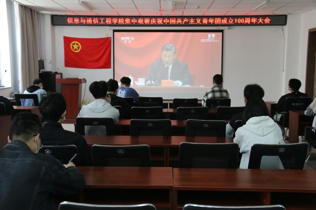 信息与通信工程学院团委严格按照疫情防控要求,组织团员青年通过直播的方式线上收看大会内容,团学骨干代表在院楼715会议室集中收看,认真聆听习近平总书记发表的重要讲话。