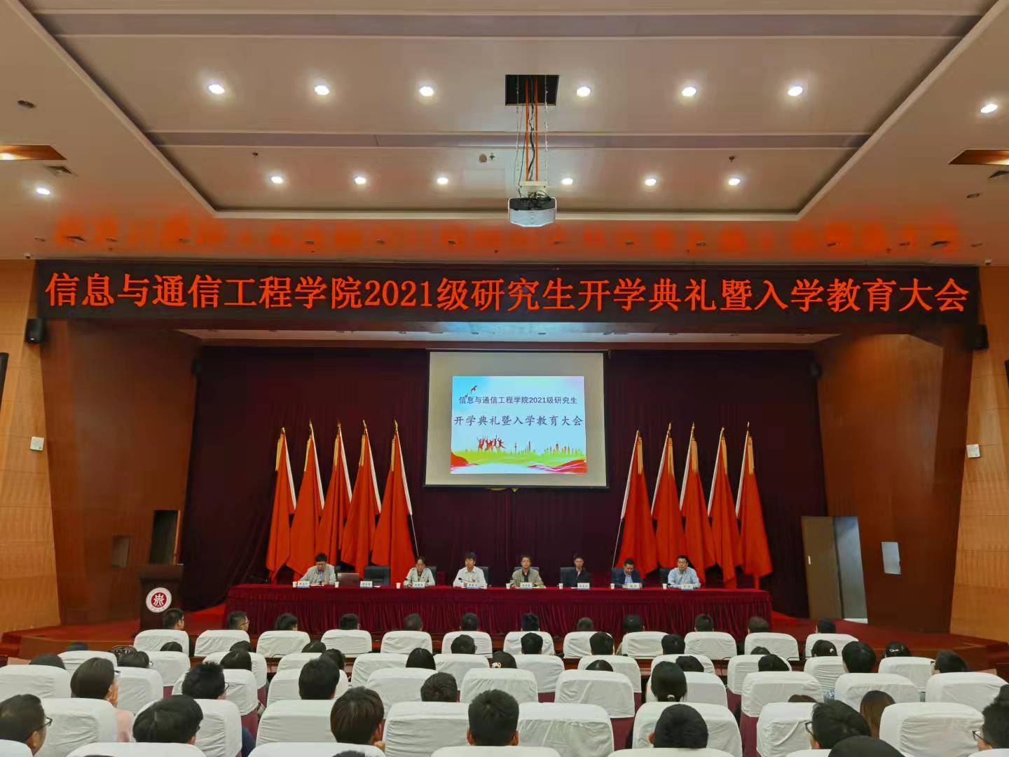 2021年9月24日,信息与通信工程学院2021级研究生开学典礼暨入学教育大会在校图书馆五层学术报告厅举行。学院党委书记曹凤才、院长杨风暴、院党委副书记兼副院长魏媛媛、电子与通信工程系主任陈友兴、生物医学工程系主任张权以及研究生导师代表刘吉等出席了会议,大会在嘹亮的国歌声中拉开帷幕。