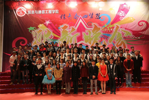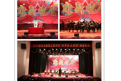 2015年11月5日晚七点,由我院团委主办,院文艺部承办的2015级信息与通信工程学院“信青春,心梦想”迎新晚会于科艺苑礼堂举行。此次晚会的嘉宾有我院党委书记杨风暴教授,院党委副书记兼副院长魏媛媛教授,学生科科长杜瑞平教授,团委副书记李欣老师,以及学生科其他老师和全体班主任老师。