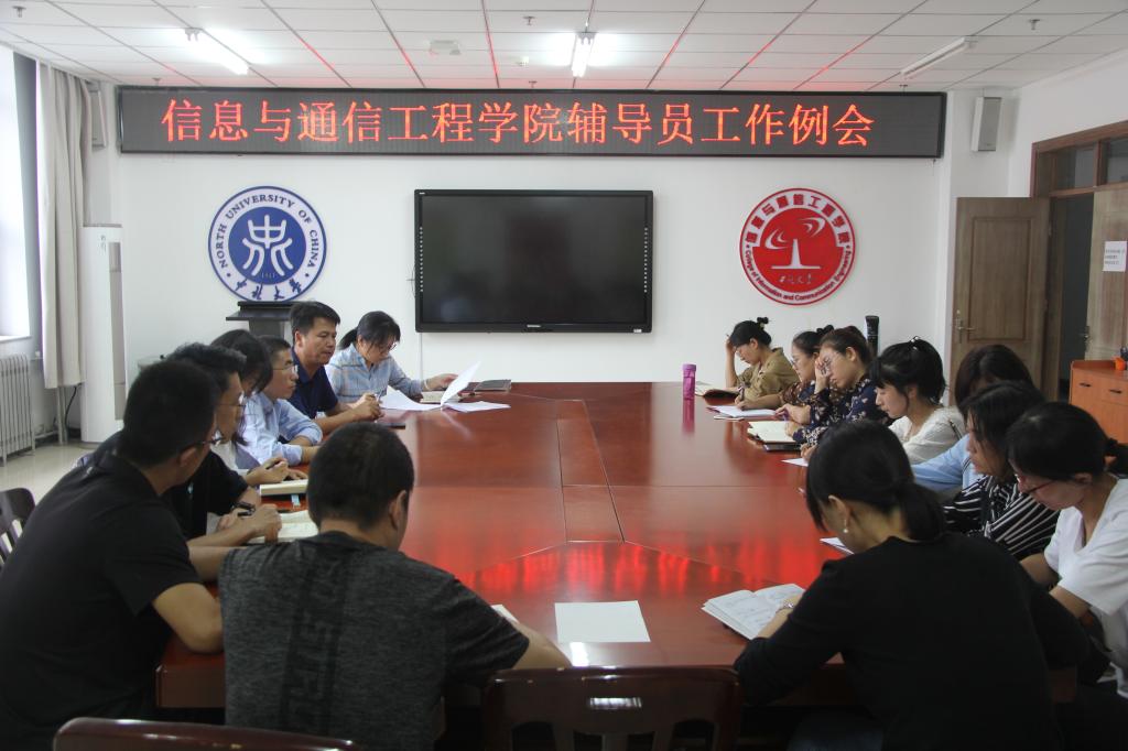 为加强辅导员队伍建设,传达学校党委副书记雷锋斌对于辅导员的工作理念及学生处九月份工作要点,8月7日下午,信息与通信工程学院在院楼713会议室召开了辅导员工作例会,会议由党委副书记兼副院长魏媛媛主持,学院党委书记曹凤才出席会议并讲话。