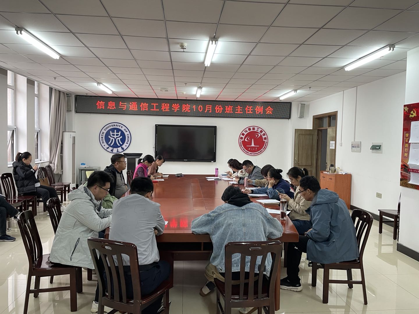 10月13日,信息与通信工程学院在院楼713会议室召开了10月份班主任工作会议。学院全体辅导员、班主任参加会议。