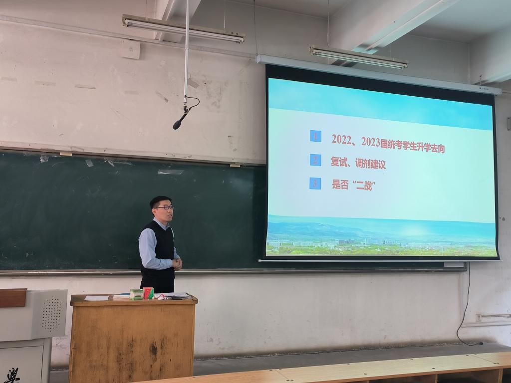 为帮助学生成功“上岸”,持续推进学院就业质量提升工作,3月15日下午,学院在10103H教室举办2024年考研复试与调剂指导讲座,讲座由学院副院长刘吉主讲。150余名毕业班学生参加了讲座。
