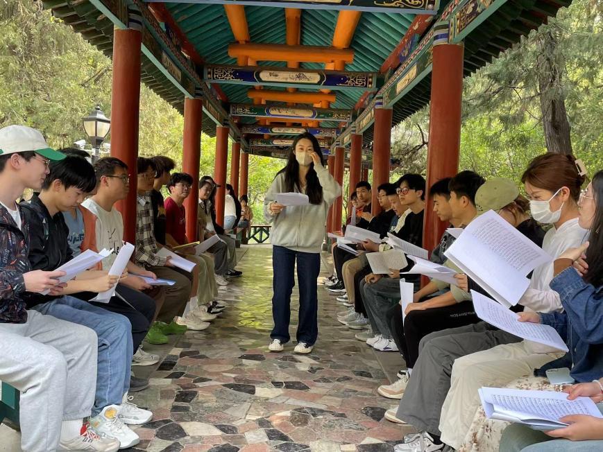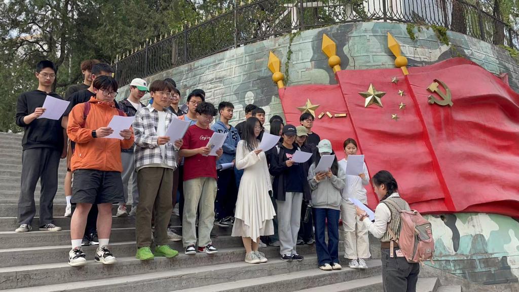 参加人员来风景秀丽的柏林园,在动听的鸟鸣声中学习老一辈革命先烈的英勇事迹,大家被深深感染,围坐在长廊的石凳上,拿出自己的入党申请书,重温入党初心。
