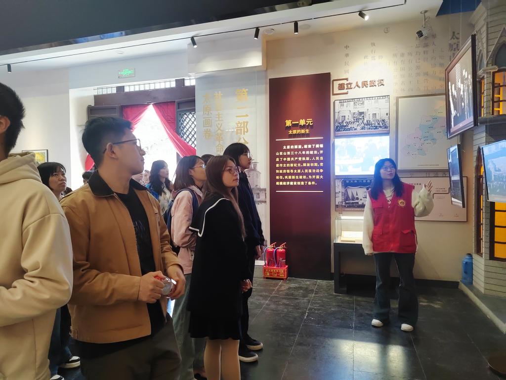 在支部书记的带领下,各支部学生党员走进展厅,跟随历史的年轮依次参观展览五个部分。一张张图片、一件件展品以及实景模型场景全面展示党领导太原人民进行革命、建设、改革、复兴的百年奋斗历程和辉煌成就,彰显不同历史时期形成的光荣传统和革命精神。大家时而驻足倾听,时而相互交流感言,被一代又一代的共产党人在太原这块热土上前仆后继、不懈奋斗的英雄事迹所震撼、感动。