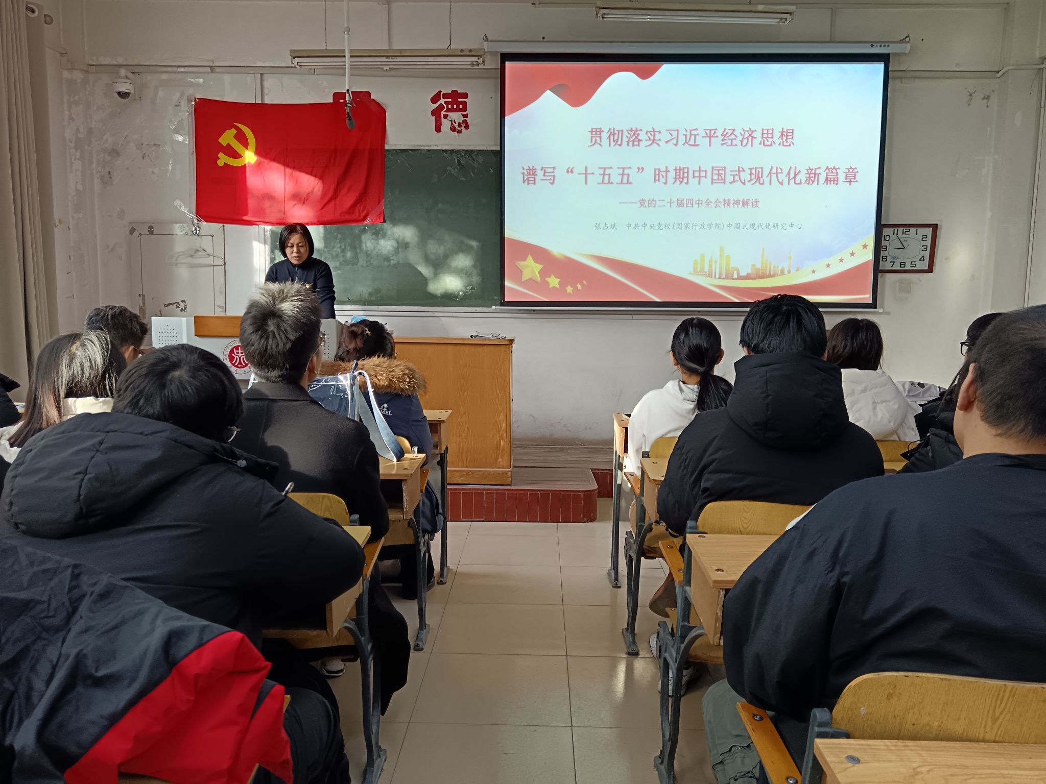 党课伊始,全体成员集中观看专题视频,系统回顾“十四五”时期我国发展重大成就。视频全方位展示了过去五年我国在经济实力、科技创新、网络安全等领域的突破性进展,其中全社会研发经费超3.6万亿元、高新技术企业突破50万家等数据,让同学们直观感受国家科技自立自强的坚实步伐。