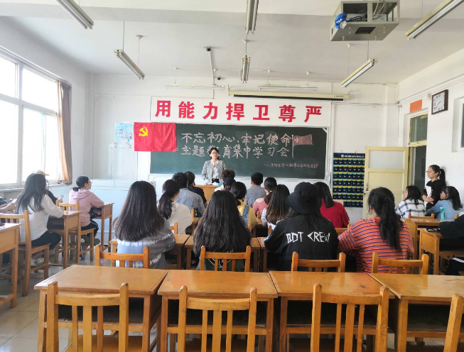 首先,支部书记石老师带领大家一起学习了“不忘初心,牢记使命”主题教育学习资料,石老师给我们讲解了本次主题教育的总任务和具体目标,并且将五个具体目标与我们大学生联系了起来,她教导我们要时刻用党员的标准要求自己,努力提升自身素养,要在大学里找到自己感兴趣的并且擅长的事情去做,要勇敢尝试,敢于担当,她说这才是青年党员应有的品性。石老师还讲述了许多当代勇于牺牲、乐于奉献的优秀党员的事例,使同学们感受到党员是一个多么光荣的称号,感受到自己的身上同样也承担着为人民服务的使命。