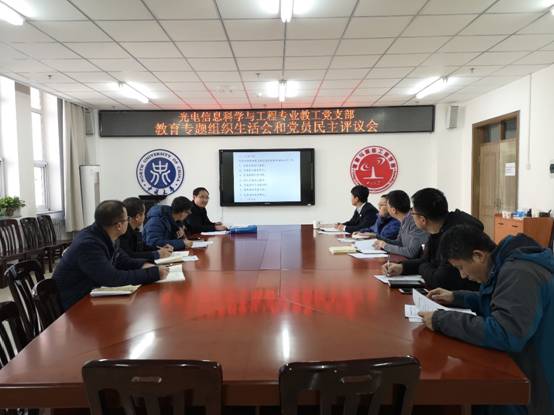 2019年12月9日上午,信息与通信工程学院光电信息科学与工程党支部在科学楼713会议室组织召开“不忘初心、牢记使命”主题教育专题组织生活会和党员民主评议会,支部全体党员参加会议。会议由党支部书记张志伟主持。