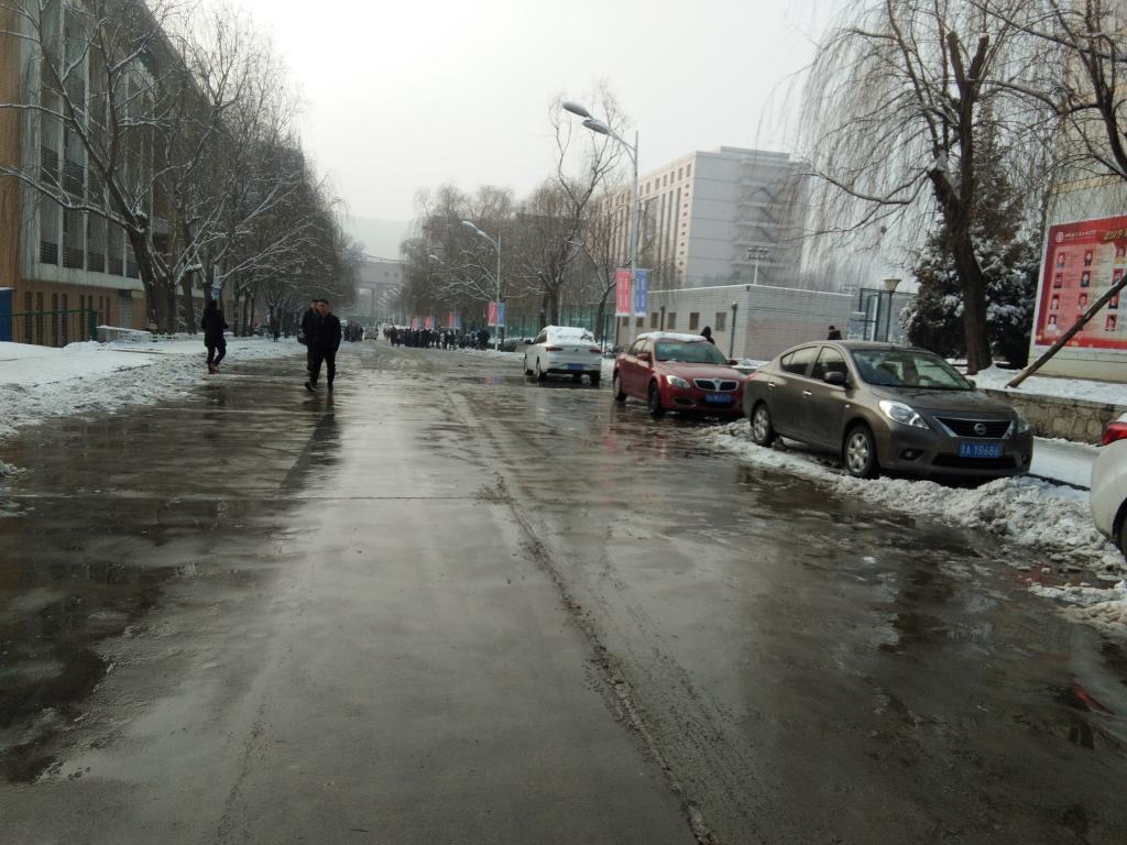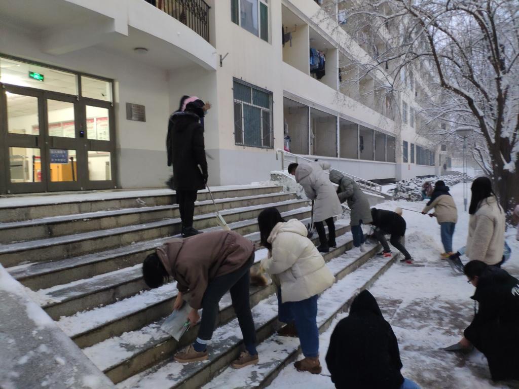 东至学生宿舍区、电工电子实验中心,西至一号教学楼前长达数千米的中央大道,同志们分工有序、热情高涨。大家齐心协力,配合默契,铲的铲、推的推、扫的扫,把校园道路上的残雪一点点挖起来,并运到路旁边。冬日的寒风阻挡不住党员清扫积雪的热情,忙碌的身影构成了冬日一道亮丽的风景线。经过大家的齐心奋战,道路变得干净畅通,为师生的通行提供了便利,营造了干净整洁的校园环境。