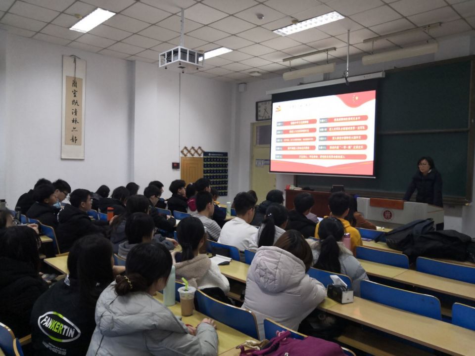 最后,邢老师号召大家要在学懂弄通上下功夫,不断增强“四个意识”、坚定“四个自信”、做到“两个维护”,真正做到融会贯通、知行统一。要厚植“一切为了人民”的情怀,密切联系同学,充分发挥桥梁纽带作用,要热爱和关心集体,顾全大局,树立榜样作用,带动同学共同建设好班集体,增强班集体的凝聚力,为学院发展贡献力量。