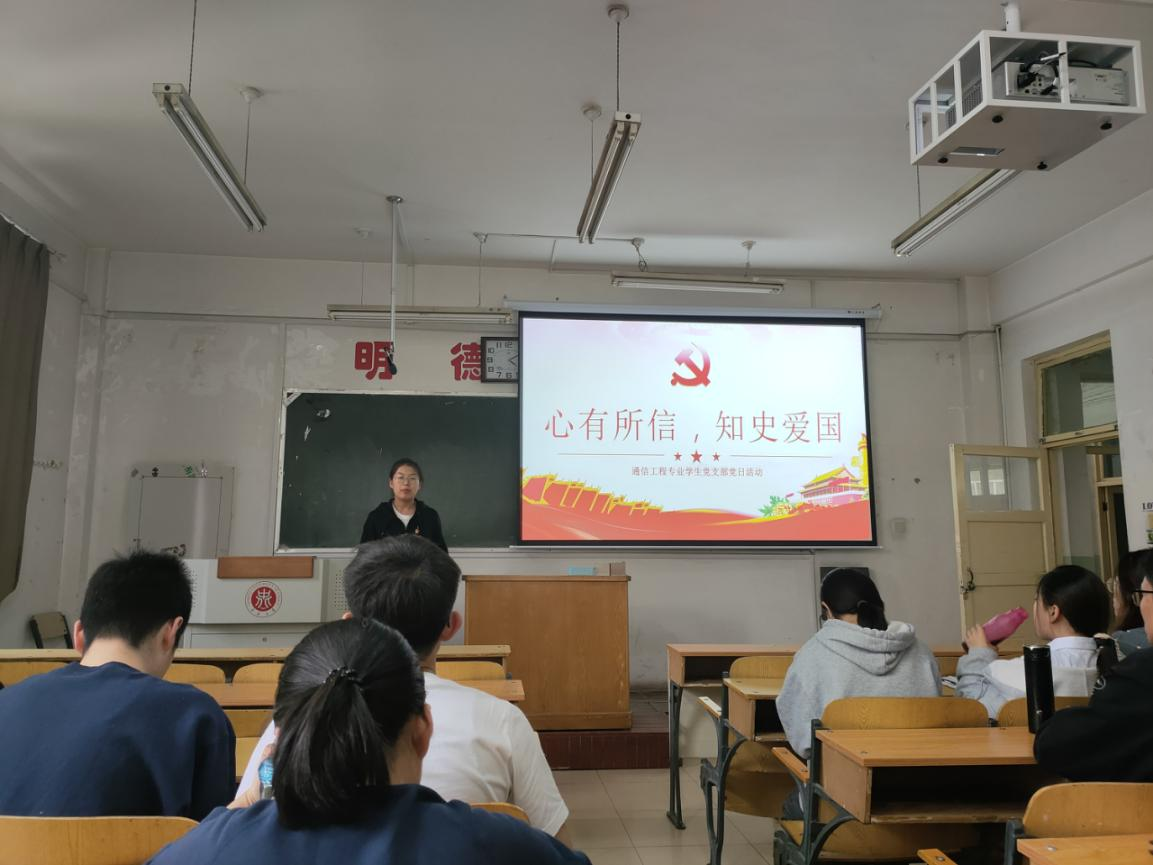 为引导支部党员积极学习“四史”,深化党员对不忘初心、牢记使命的认识和理解,2021年3月24日下午,通信工程专业学生党支部在10206Z教室举办了主题为“心有所信,知史爱国”的主题党日活动。