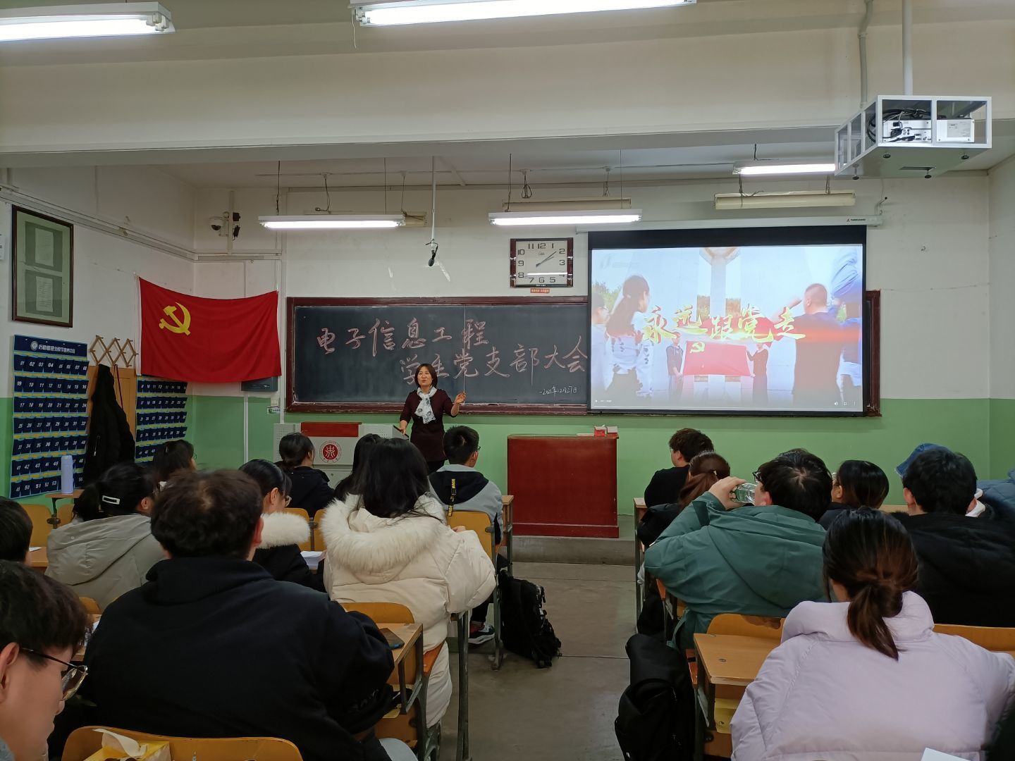 按照学院党委安排部署,电子信息工程学生党支部于2021年12月27日在01106召开党支部学习大会,组织党员一起观看了由山西省委组织部、省广播电视台联合制作完成的《党课开讲啦-榜样》专题节目。