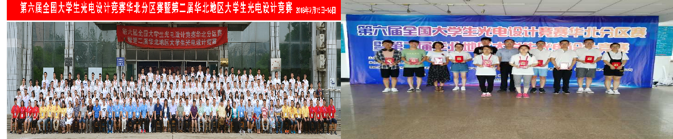 第六届全国大学生光电设计竞赛华北分区赛暨第二届华北地区光电设计竞赛于2018年7月15-16日在燕山大学举行。来自天津大学、北京理工大学、中央民族大学、天津工业大学、燕山大学、河北大学、华北理工大学及我校等10余所高校的70余支代表队参加了三个项目的比赛。我校8支队伍参加了本次比赛,其中光之子队(队员:薛凯文、翟倩芸、李志勇,指导老师景宁、张志伟)获得穿透毛玻璃的可见光成像系统实物赛一等奖,梦想成真队(队员:杨智斐、贾怡、丁继根,指导老师赵辉)获得穿透毛玻璃的可见光成像系统实物赛二等奖,扬帆起航队(队员:杨云良、蔡睿博、皮田田,指导老师张志伟)、乐乐队(队员:朱睿、刘泽林、王鹏,指导老师张志伟)以及寻光小分队(队员:薛继玲、刘帅,毛思聪,指导老师田二明)获得穿透毛玻璃的可见光成像系统实物赛三等奖;向量队(队员:王诗雯、何鑫、李浩,指导老师张志伟、李科蕾)获得光电“寻的”竞技车实物赛三等奖。