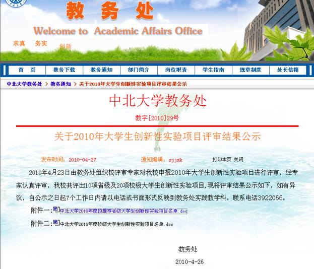 推荐单位(公章) 中北大学 2010年4月26日