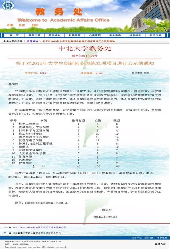 大学生创新实验、实训项目统计和立项发文