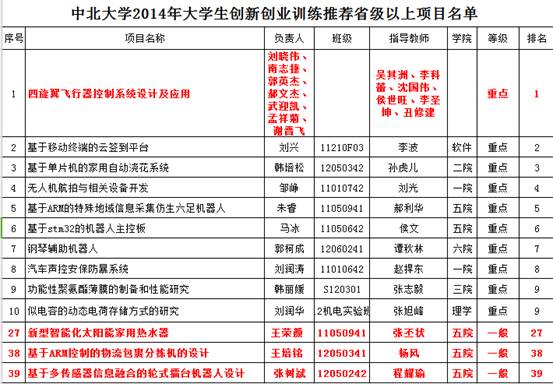 创新性实验项目汇总表(校级)