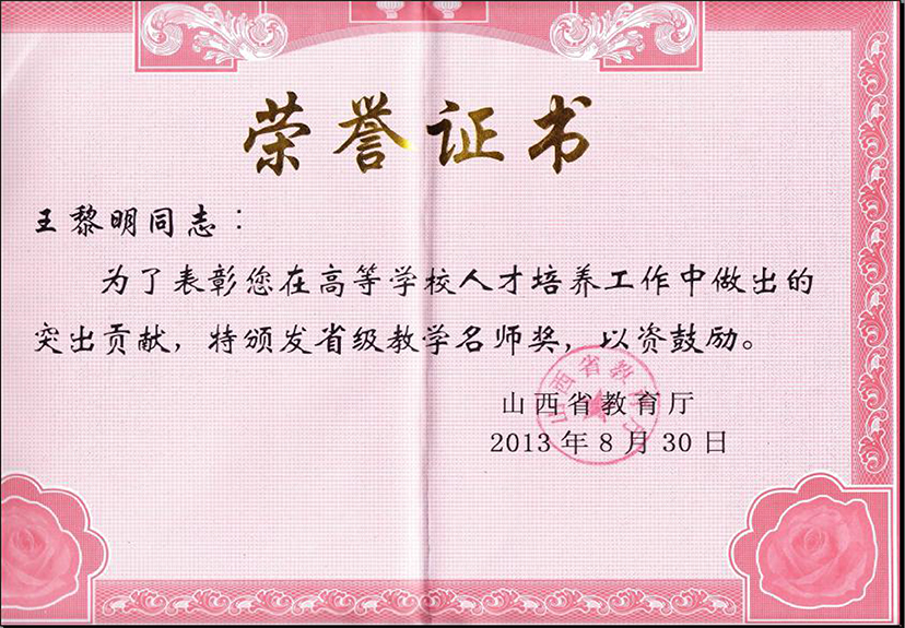 2008年被评为山西省优秀教学团队。